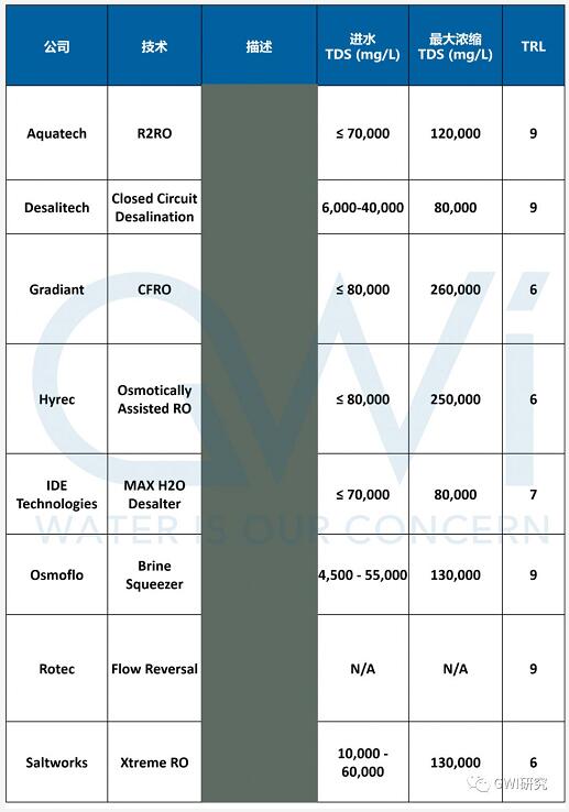 下表列出了目前市場(chǎng)上使用RO技術(shù)進(jìn)行鹽水濃縮的一些領(lǐng)先公司及其產(chǎn)品:
