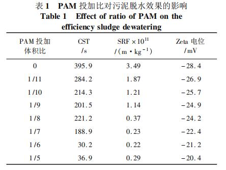 2. 1 PAM 對污泥脫水性能的影響