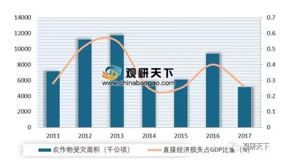 2011-2017年我國(guó)農(nóng)作物受災(zāi)面積情況