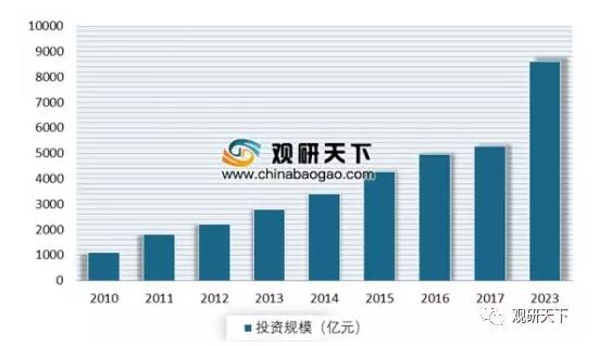 十二五”期間水務(wù)行業(yè)的投資力度以年均24%的速度增長(zhǎng)。2016年,中國(guó)水務(wù)行業(yè)的年度投資額達(dá)到4963.52億元。截止至2017年中國(guó)水務(wù)行業(yè)投資額為5276.78億元。預(yù)計(jì),到2023年,我國(guó)水務(wù)行業(yè)的年度投資額將突破8600億元。